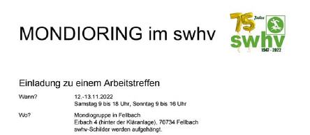 Erstes Swhv Arbeitstreffen Mondioring und wir konnten etwas dazu beitragen.