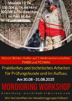 Zur Vorbereitung auf die diesjährige Mondioring- Helfer-(Figuranten-)prüfung bietet wir für allen interessierten Figuranten am 16.03.2024 einen Tag mit Theorie und Praxis in Fellbach an.